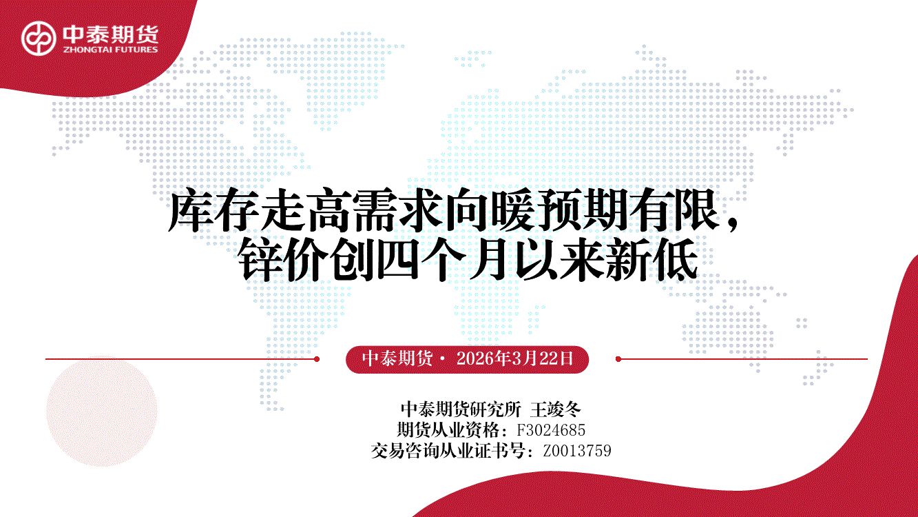 中泰期货-库存走高需求向暖预期有限,锌价创四个月以来新低-260322
