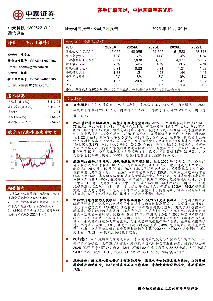 中天科技:中泰证券-中天科技-600522-在手订单充足,中标首单空芯光纤-251030