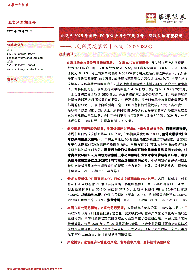 华源证券-北交所周观察第十八期:北交所2025年首场IPO审议会将于下周召开,新股供给有望提速-250322