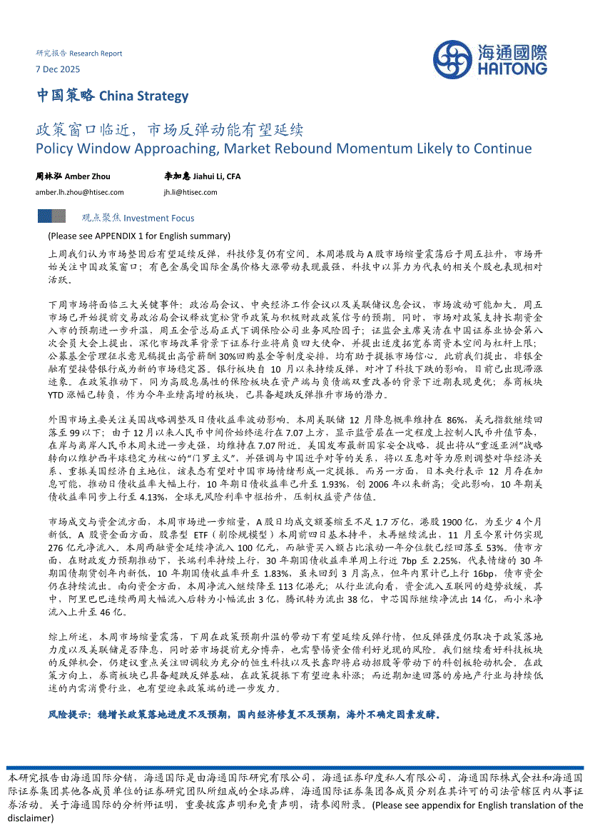海通国际-中国策略:政策窗口临近,市场反弹动能有望延续-251207
