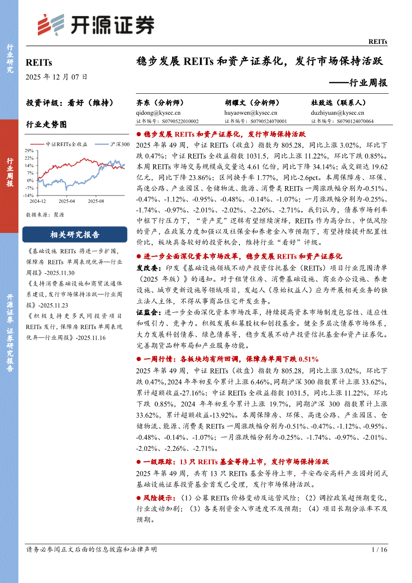 REITs行业:开源证券-REITs行业周报:稳步发展REITs和资产证券化,发行市场保持活跃-251207