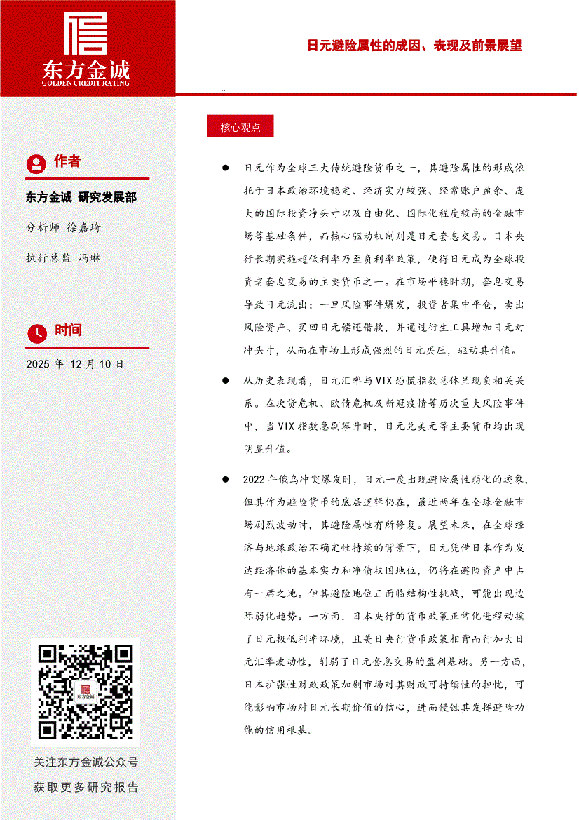 东方金诚-日元避险属性的成因、表现及前景展望-251210
