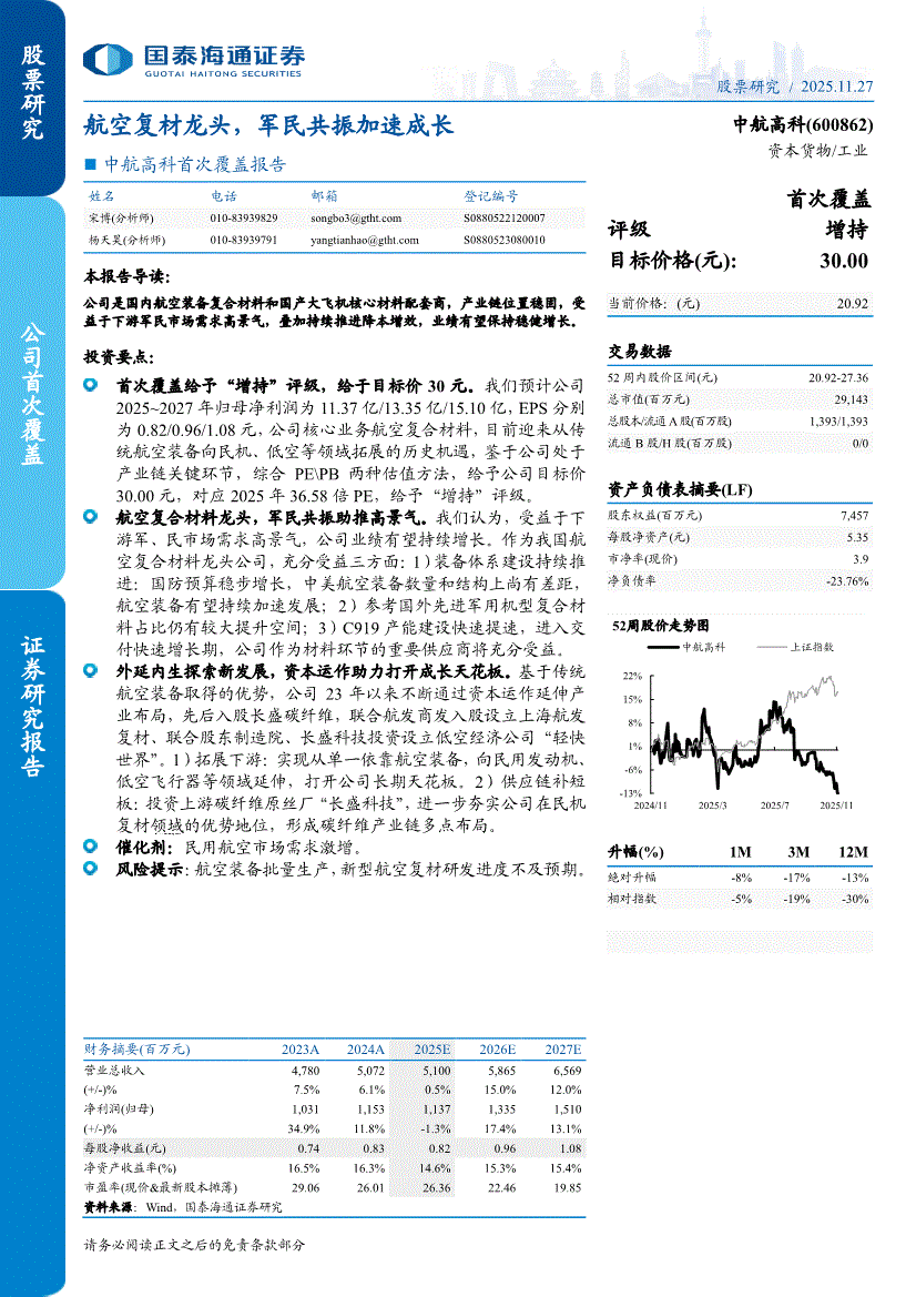 中航高科:国泰海通证券-中航高科-600862-首次覆盖报告:航空复材龙头,军民共振加速成长-251127