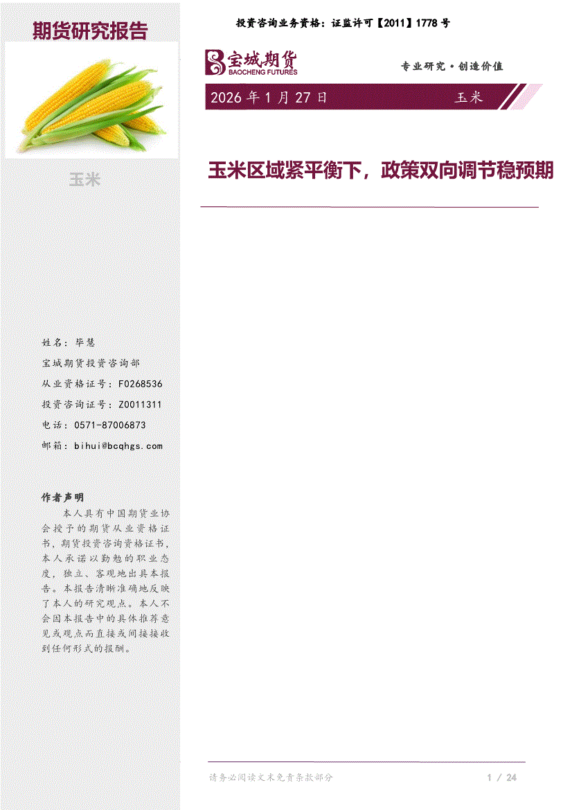 宝城期货-玉米区域紧平衡下,政策双向调节稳预期-260127