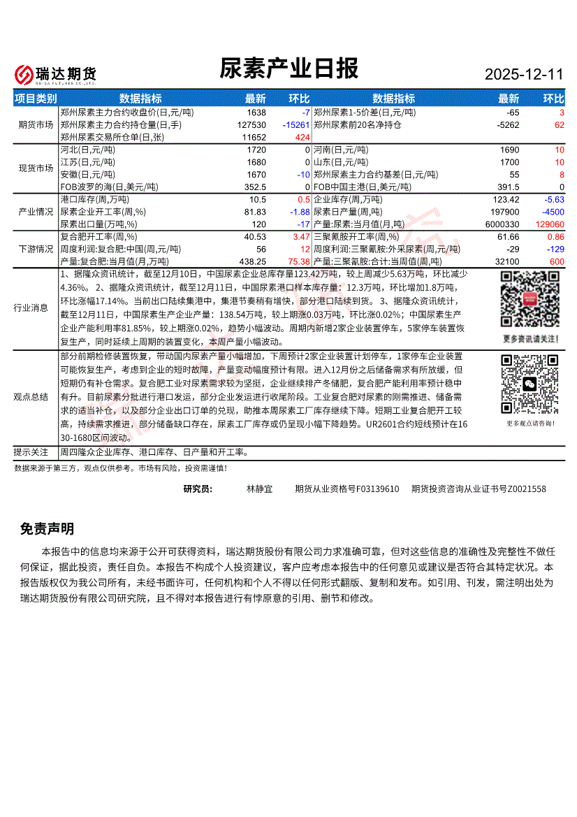 瑞达期货-尿素产业日报-251211