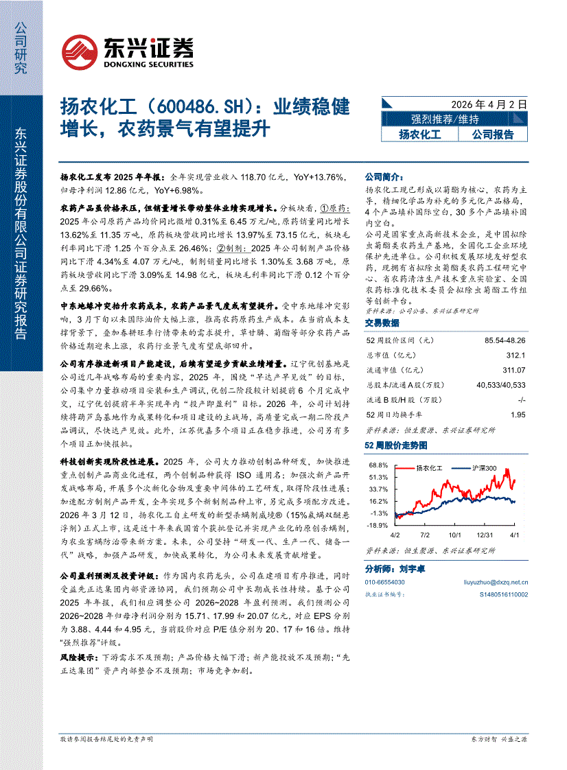 扬农化工:东兴证券-扬农化工-600486-业绩稳健增长,农药景气有望提升-260402