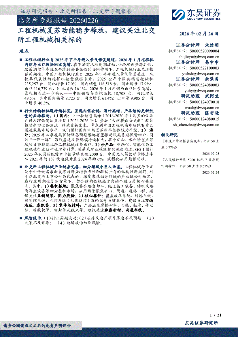 东吴证券-北交所专题报告:工程机械复苏动能稳步释放,建议关注北交所工程机械相关标的-260226
