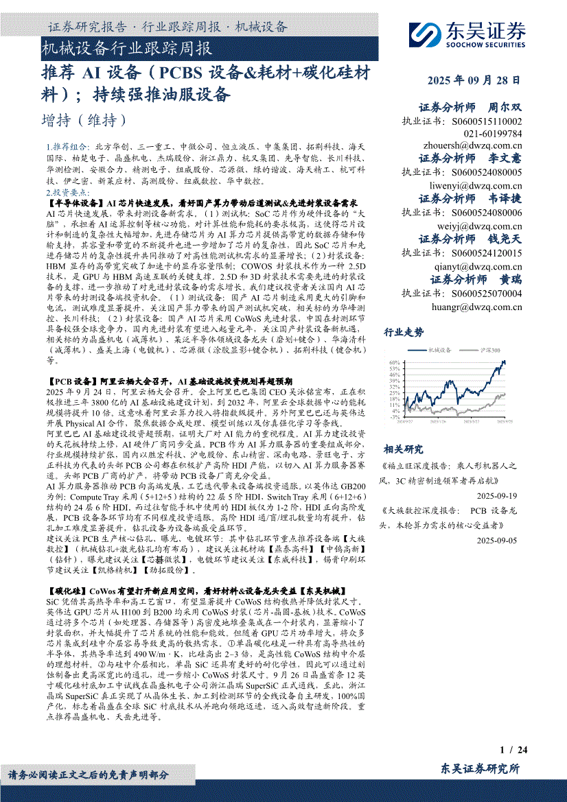 机械设备行业:东吴证券-机械设备行业跟踪周报:推荐AI设备(PCBS设备&耗材+碳化硅材料);持续强推油服设备-250928