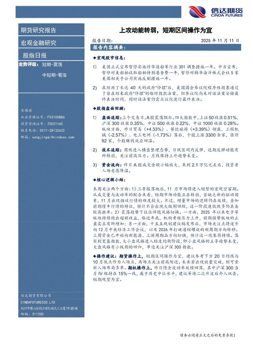 信达期货-股指日报:上攻动能趋弱,短期延续区间震荡-251112
