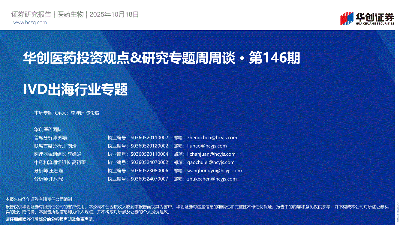 医药行业:华创证券-医药行业投资观点&研究专题周周谈·第146期:IVD出海行业专题-251018