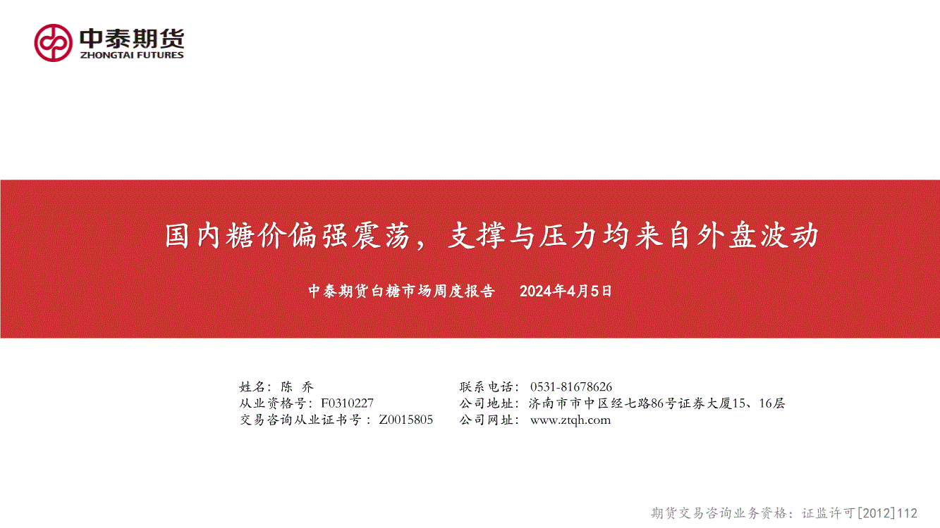 中泰期货-白糖市场周度报告:国内糖价偏强震荡,支撑与压力均来自外盘波动-250405