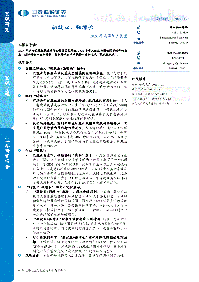 国泰海通证券-2026年美国经济展望:弱就业、强增长-251126