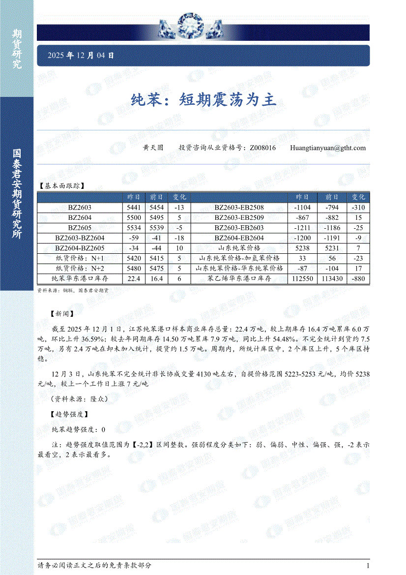 国泰君安期货-纯苯、苯乙烯周报-251207