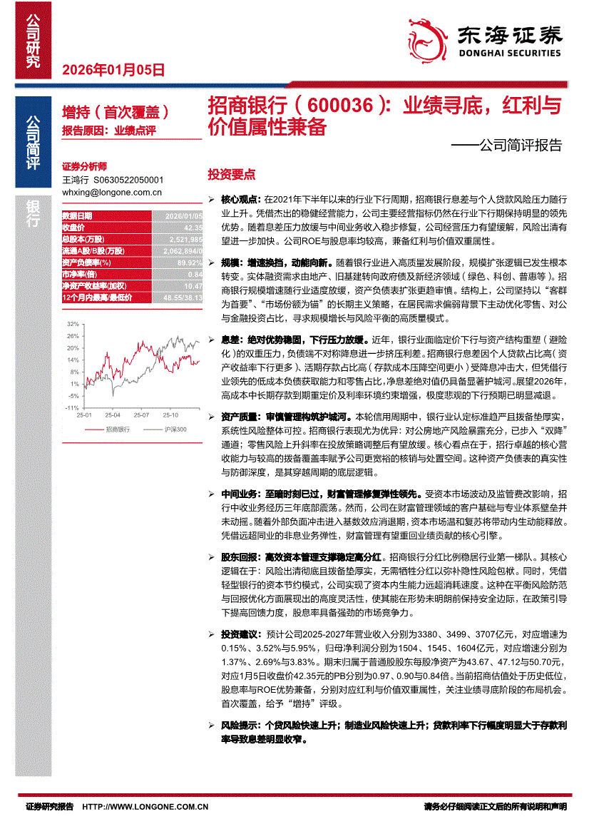 招商银行:东海证券-招商银行-600036-公司简评报告:业绩寻底,红利与价值属性兼备-260105