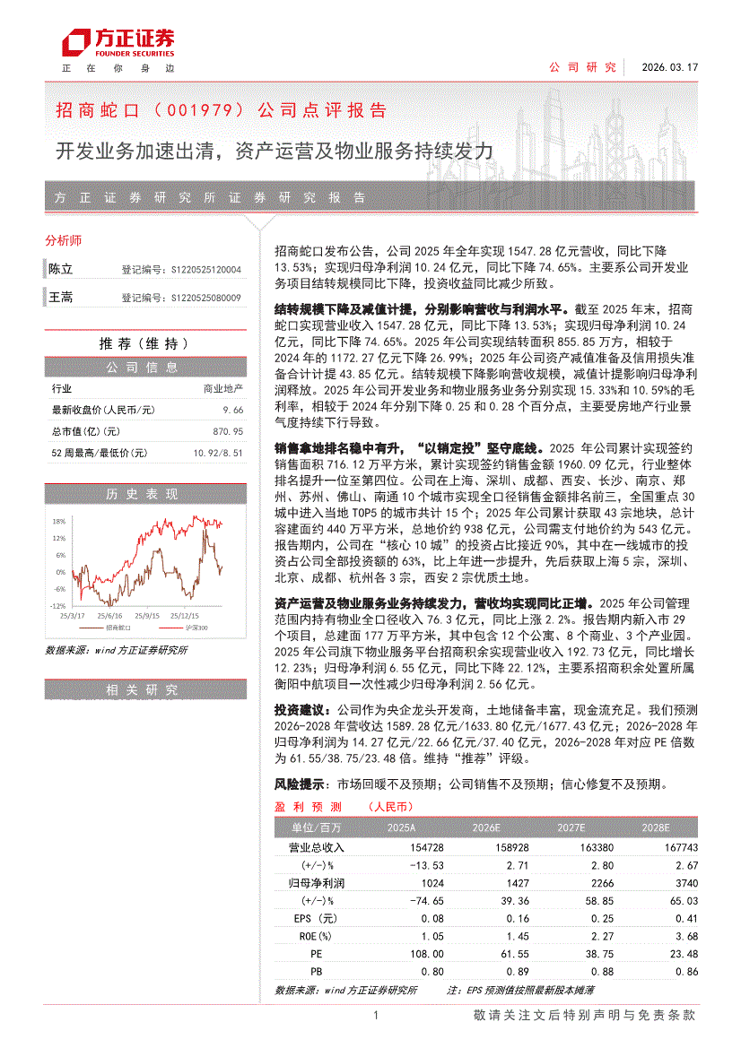 招商蛇口:方正证券-招商蛇口-001979-公司点评报告:开发业务加速出清,资产运营及物业服务持续发力-260317