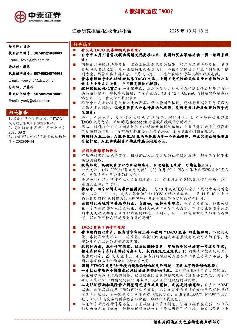 中泰证券-A债如何适应TACO?-251018