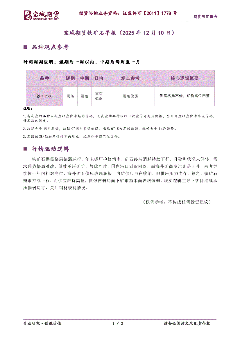 宝城期货-铁矿石早报-251215