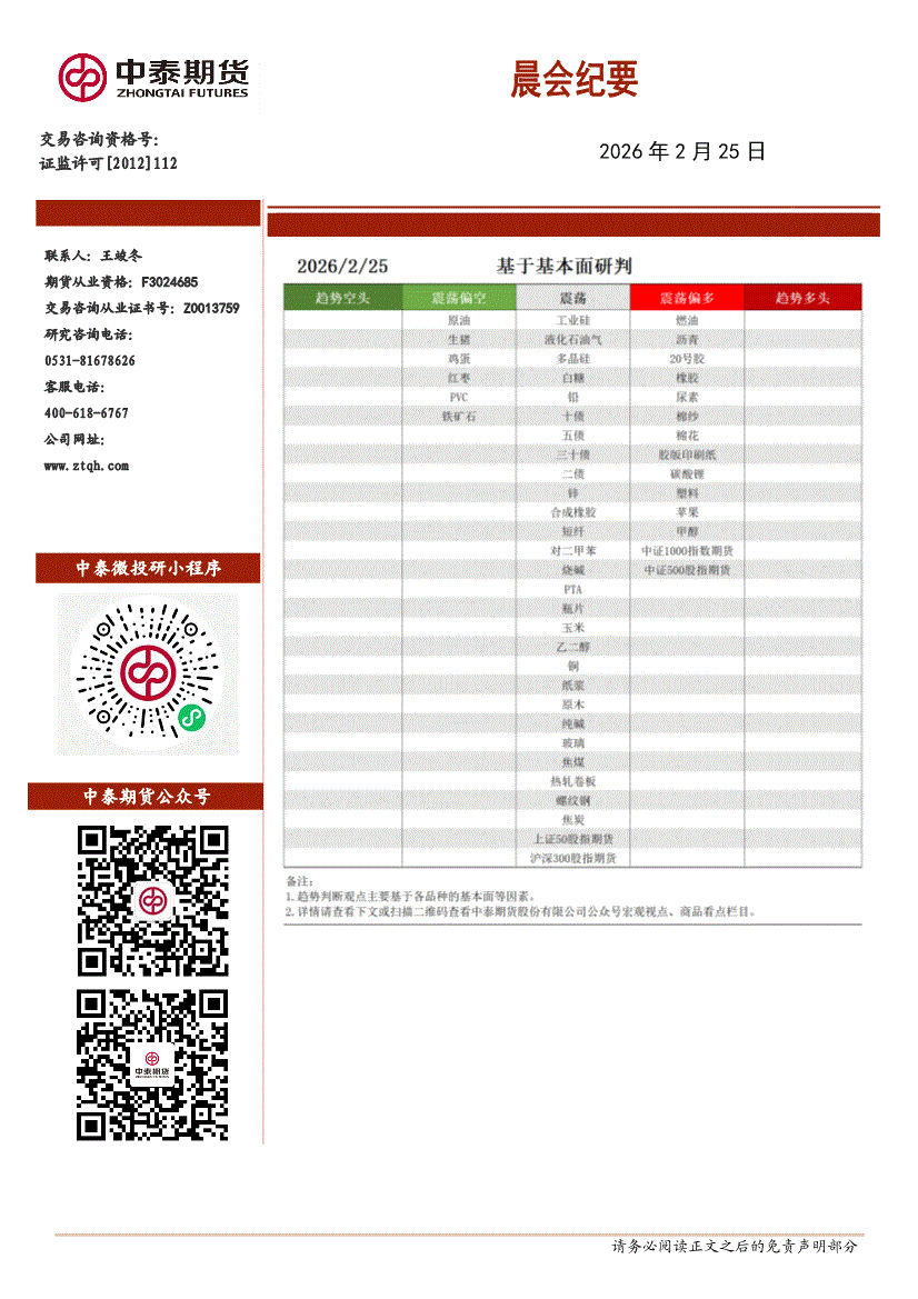 中泰期货-晨会纪要-260225
