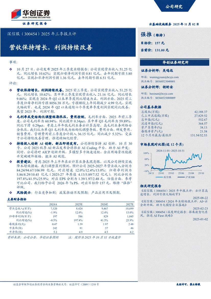 深信服:华创证券-深信服-300454-2025年三季报点评:营收保持增长,利润持续改善-251102