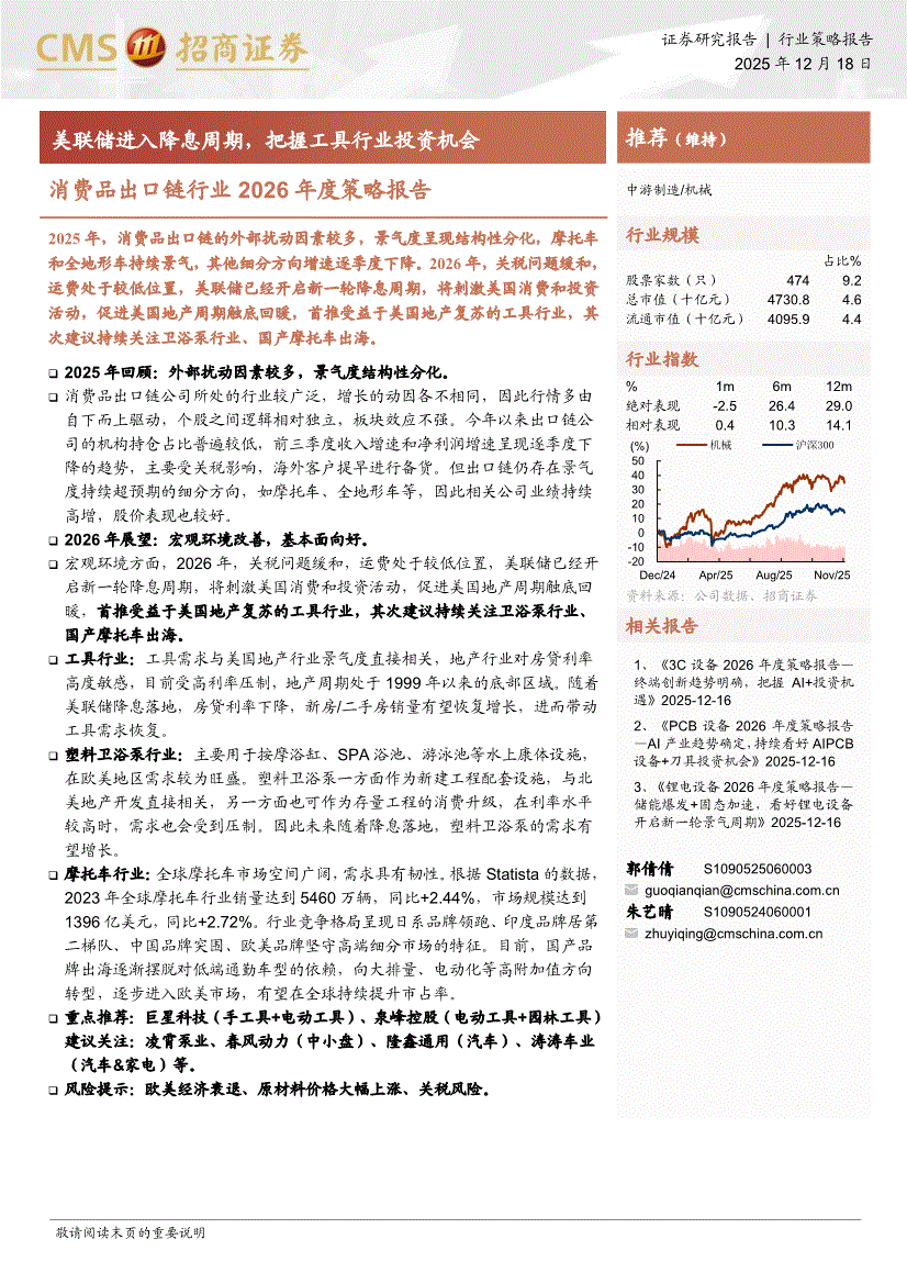 消费品出口链行业:招商证券-消费品出口链行业2026年度策略报告:美联储进入降息周期,把握工具行业投资机会-251218