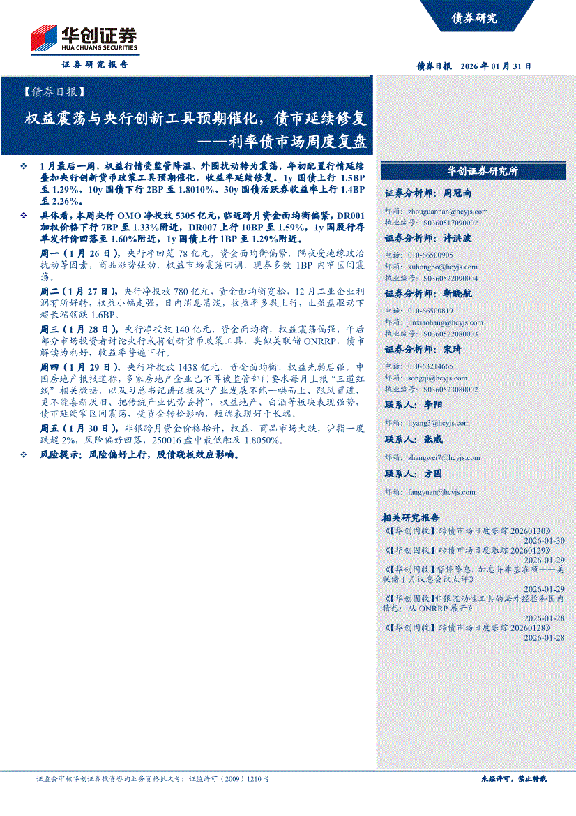 华创证券-利率债市场周度复盘:权益震荡与央行创新工具预期催化,债市延续修复-260131