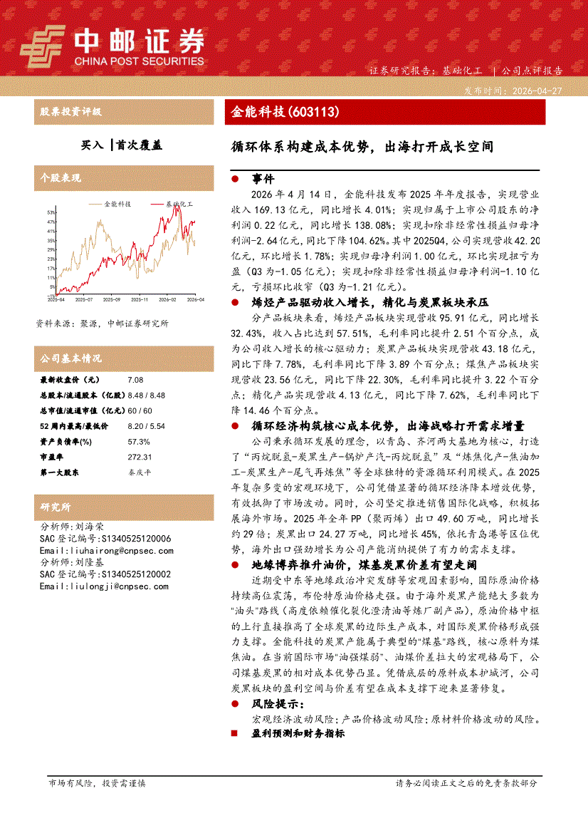 金能科技:中邮证券-金能科技-603113-循环体系构建成本优势,出海打开成长空间-260427