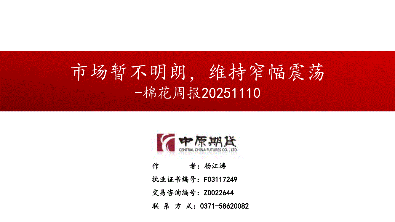 中原期货-棉花周报:市场暂不明朗,维持窄幅震荡-251110