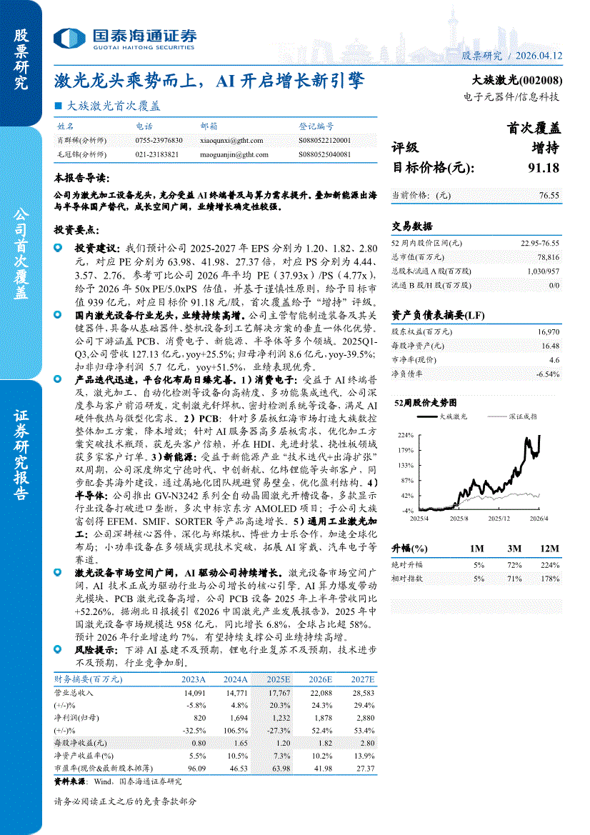 大族激光:国泰海通证券-大族激光-002008-首次覆盖:激光龙头乘势而上,AI开启增长新引擎-260412