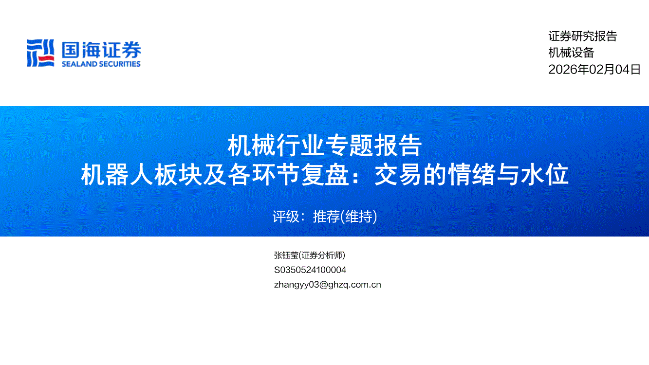 机械行业:国海证券-机械行业专题报告:机器人板块及各环节复盘,交易的情绪与水位-260204