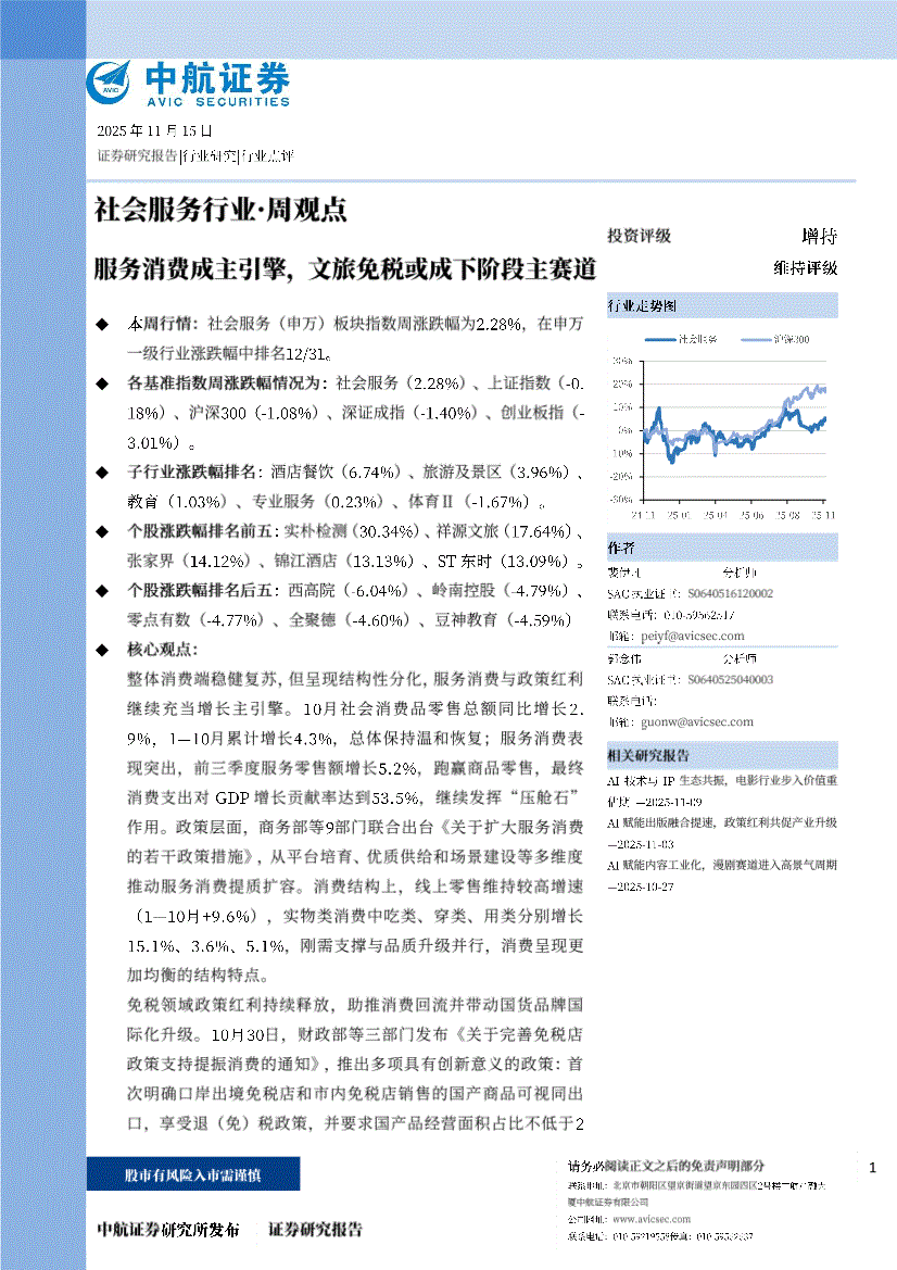 社会服务行业:中航证券-社会服务行业·周观点:服务消费成主引擎,文旅免税或成下阶段主赛道-251115