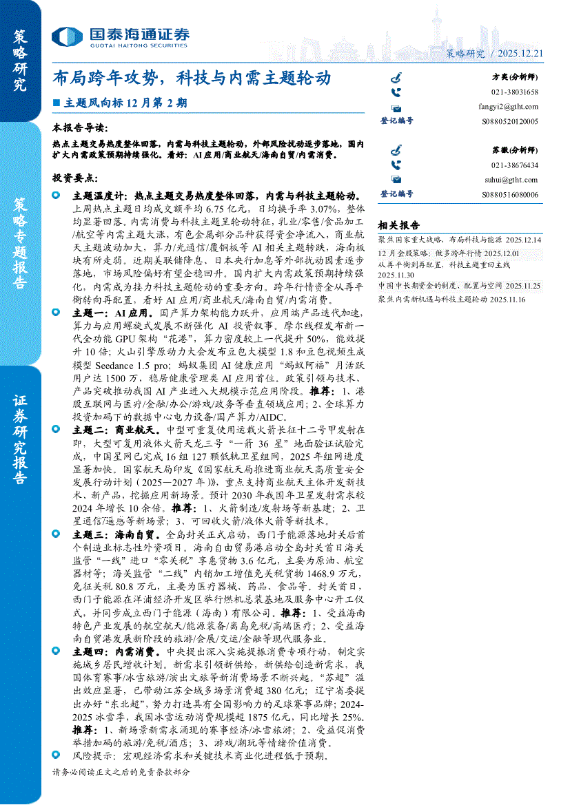国泰海通证券-主题风向标12月第2期:布局跨年攻势,科技与内需主题轮动-251221