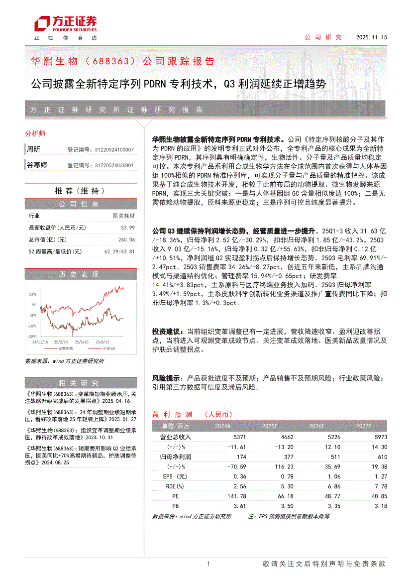 华熙生物:方正证券-华熙生物-688363-公司跟踪报告:公司披露全新特定序列PDRN专利技术,Q3利润延续正增趋势-251115