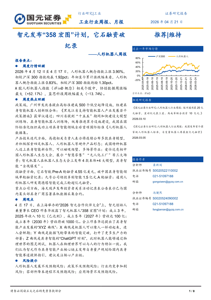 人形机器人行业:国元证券-人形机器人行业周报:智元发布“358宏图”计划,它石融资破纪录-260421
