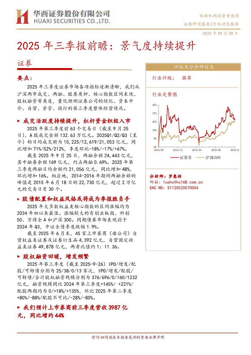 证券行业:华西证券-证券行业2025年三季报前瞻:景气度持续提升-250928