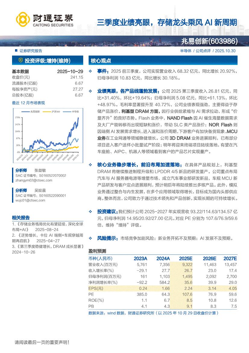 兆易创新:财通证券-兆易创新-603986-三季度业绩亮眼,存储龙头乘风AI新周期-251030