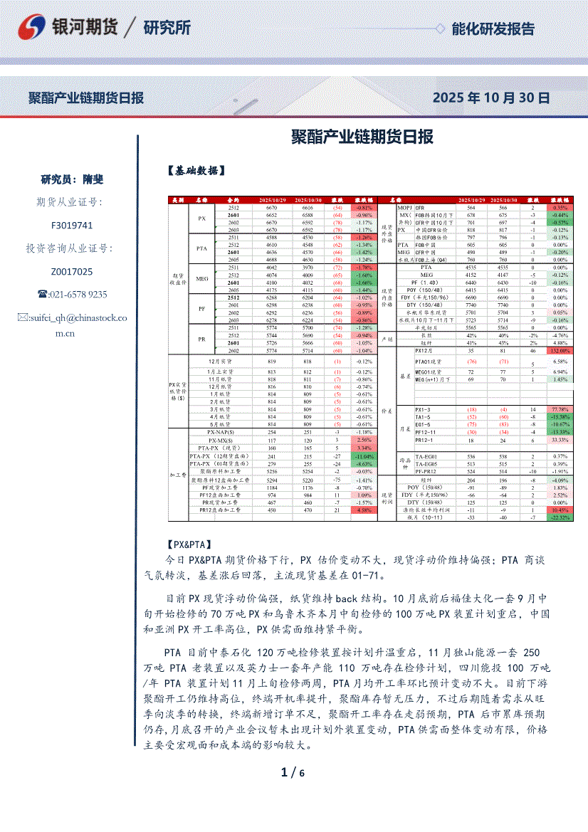 银河期货-聚酯产业链期货日报-251030