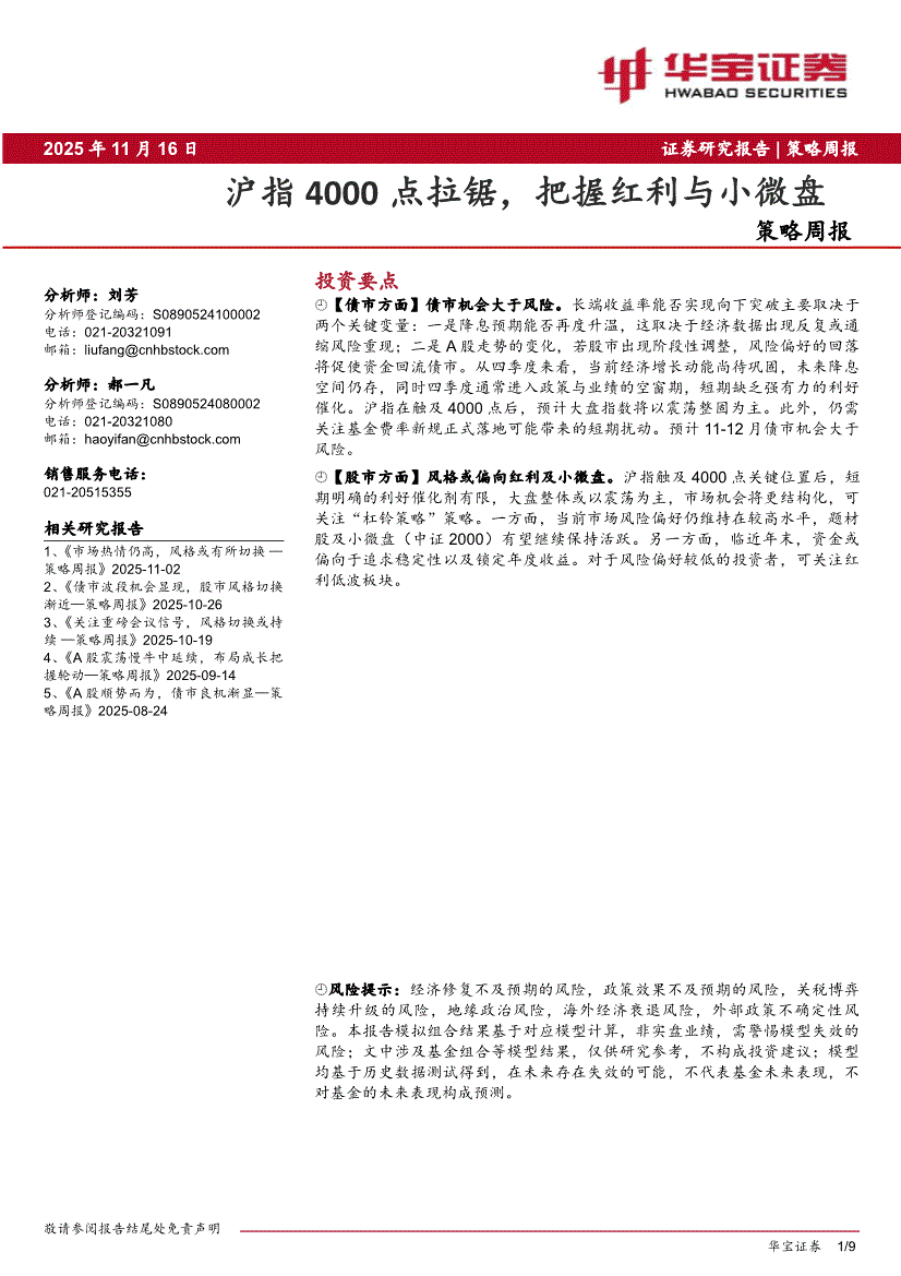华宝证券-策略周报:沪指4000点拉锯,把握红利与小微盘-251116