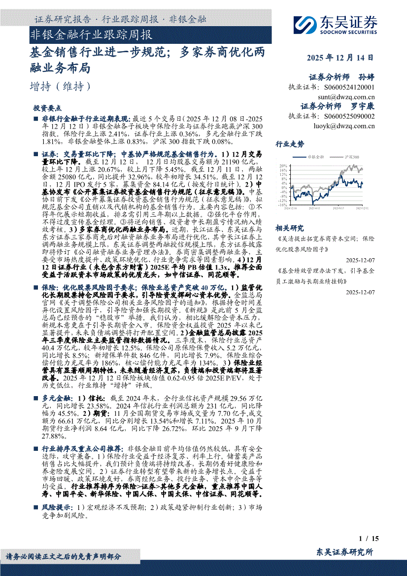 东吴证券-非银金融行业跟踪周报:基金销售行业进一步规范;多家券商优化两融业务布局-251214