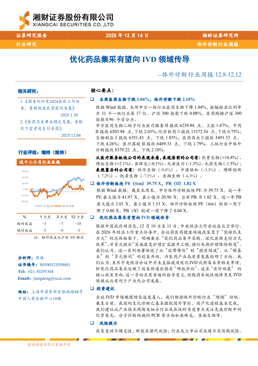 体外诊断行业:湘财证券-体外诊断行业周报:优化药品集采有望向IVD领域传导-251214