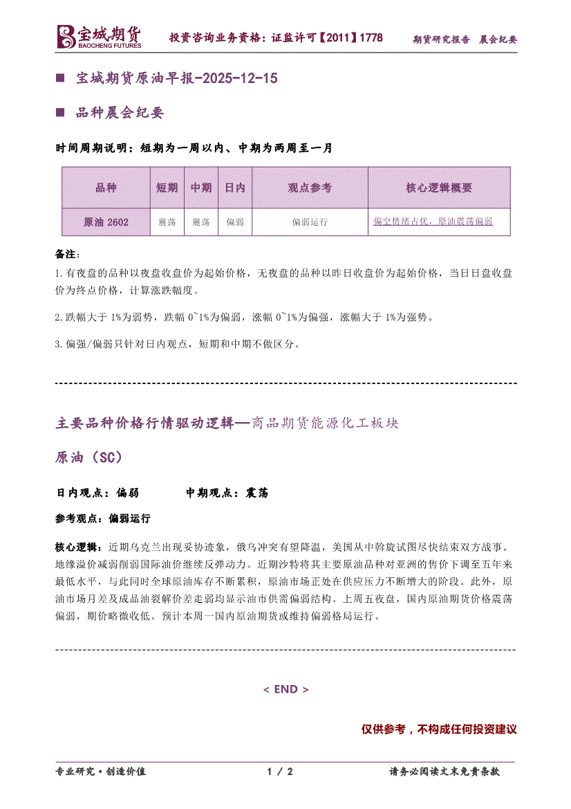 宝城期货-橡胶甲醇原油日报:偏空氛围主导,能化震荡偏弱-251209