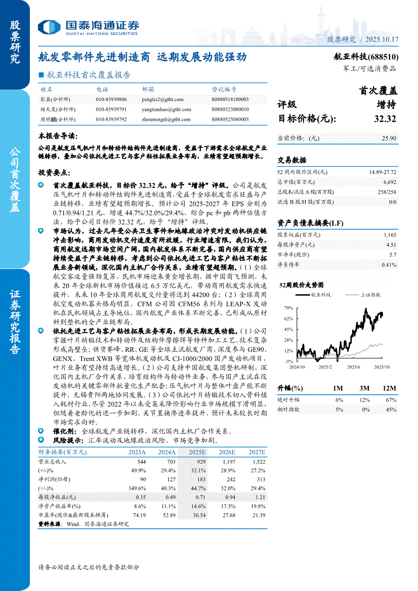 航亚科技:国泰海通证券-航亚科技-688510-首次覆盖报告:航发零部件先进制造商,远期发展动能强劲-251017