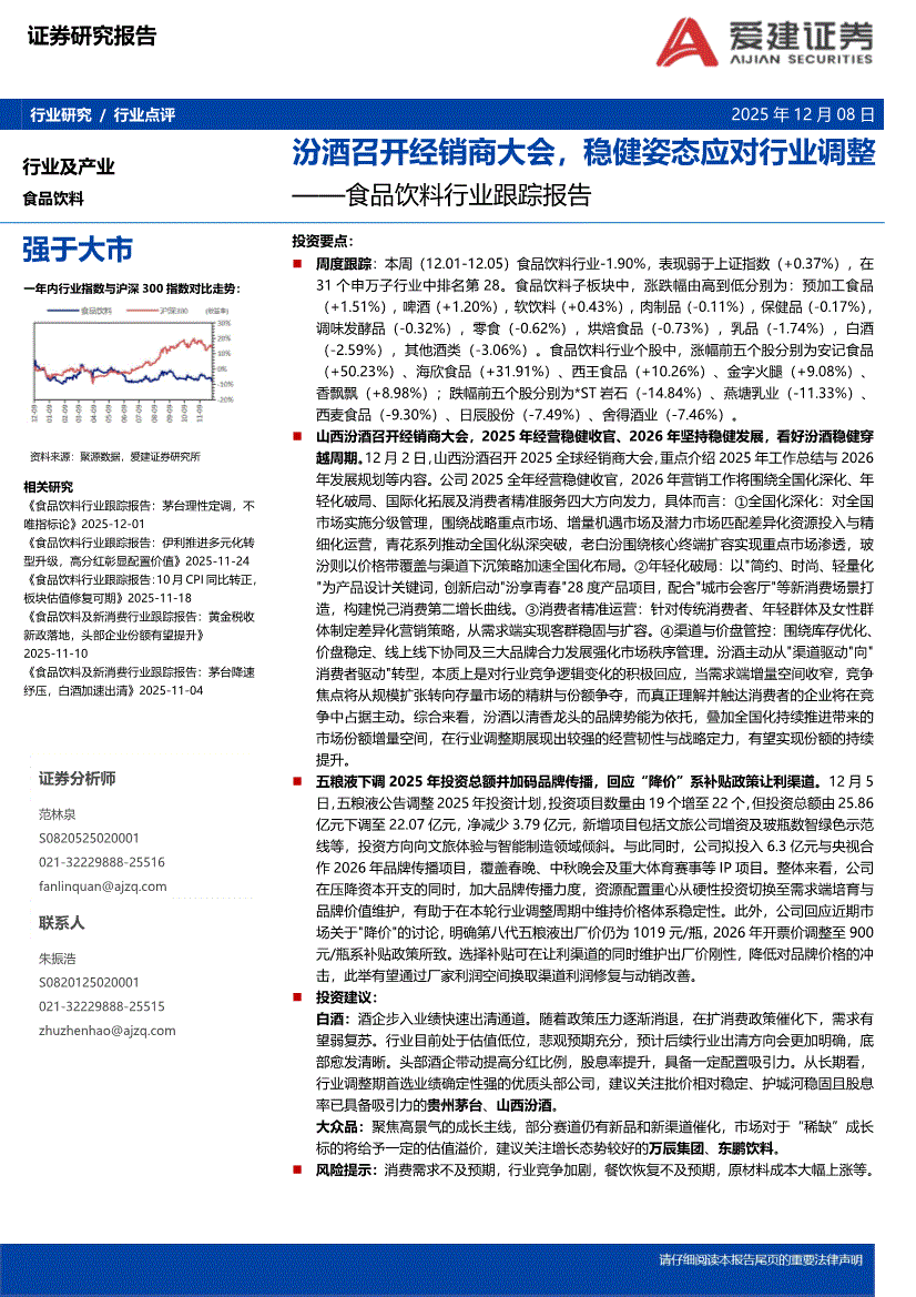 食品饮料行业:爱建证券-食品饮料行业跟踪报告:汾酒召开经销商大会,稳健姿态应对行业调整-251208