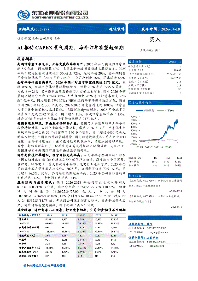 亚翔集成:东北证券-亚翔集成-603929-AI推动CAPEX景气周期,海外订单有望超预期-260418