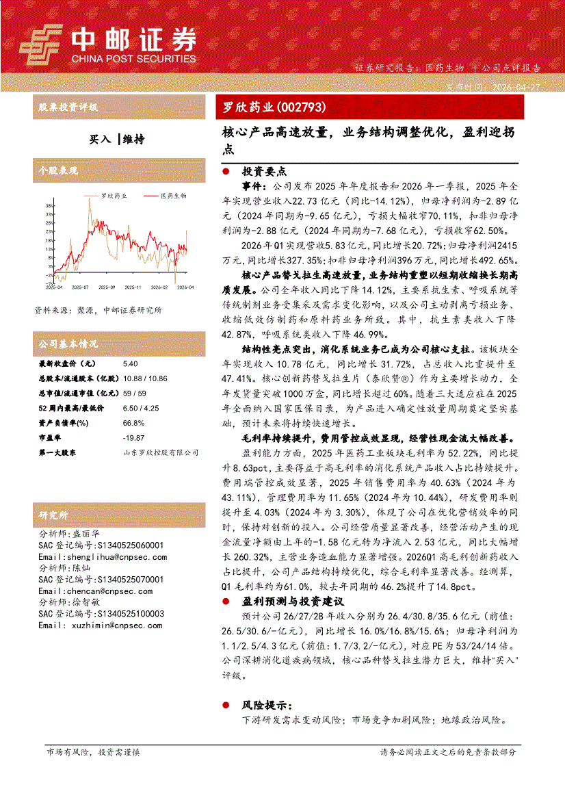 罗欣药业:中邮证券-罗欣药业-002793-核心产品高速放量,业务结构调整优化,盈利迎拐点-260427
