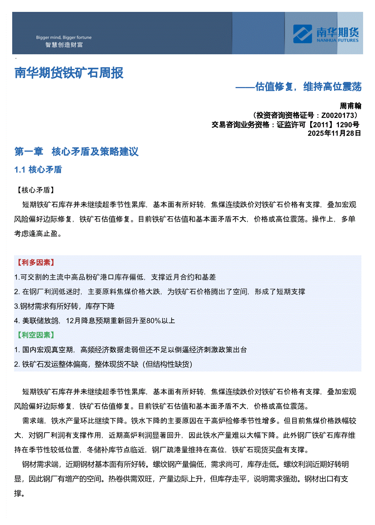 南华期货-铁矿石周报:估值修复,维持高位震荡-251128