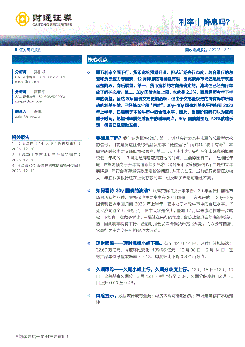 财通证券-利率|买债500亿元?还是要关注底色-251203