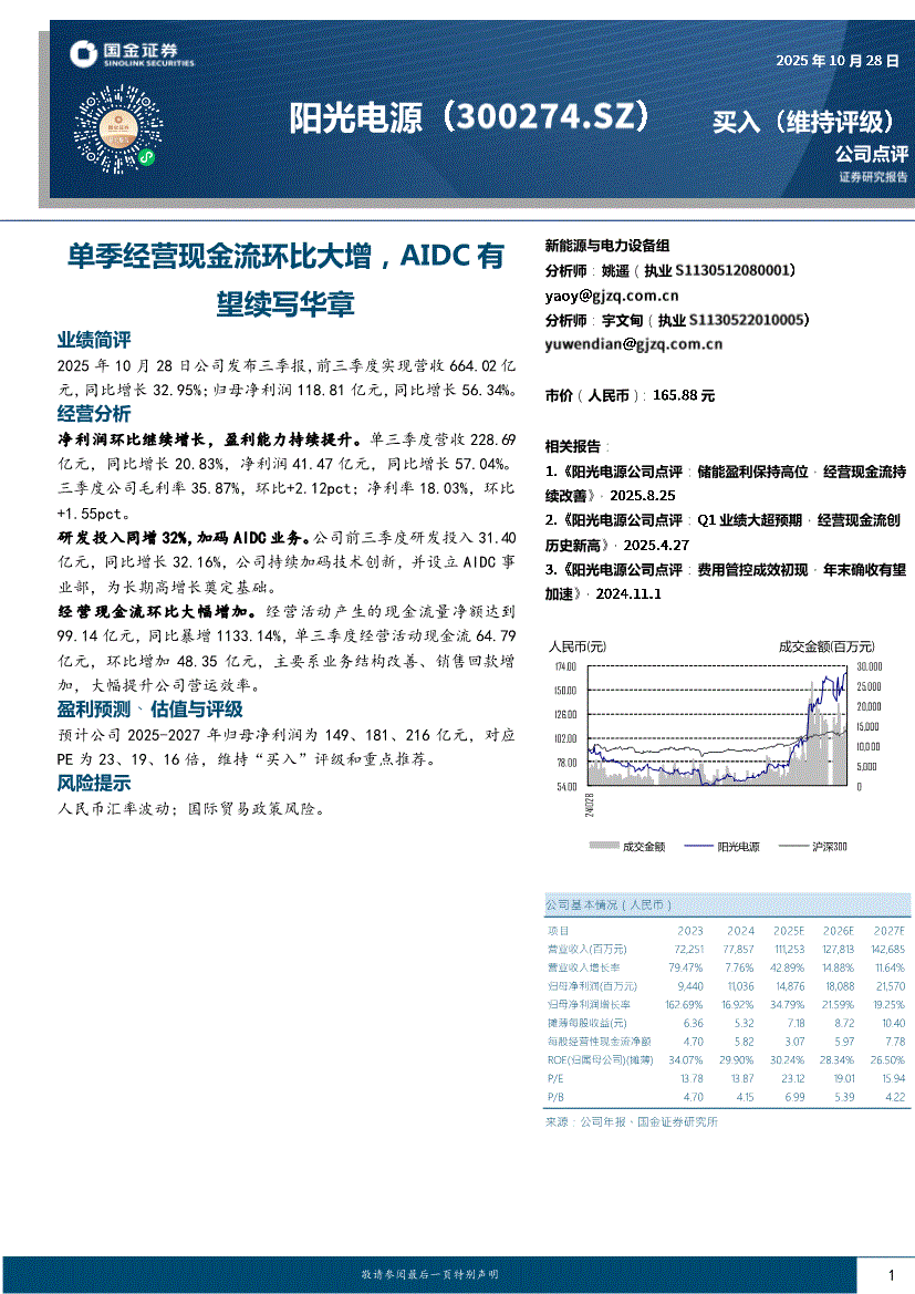 阳光电源:国金证券-阳光电源-300274-单季经营现金流环比大增,AIDC有望续写华章-251028