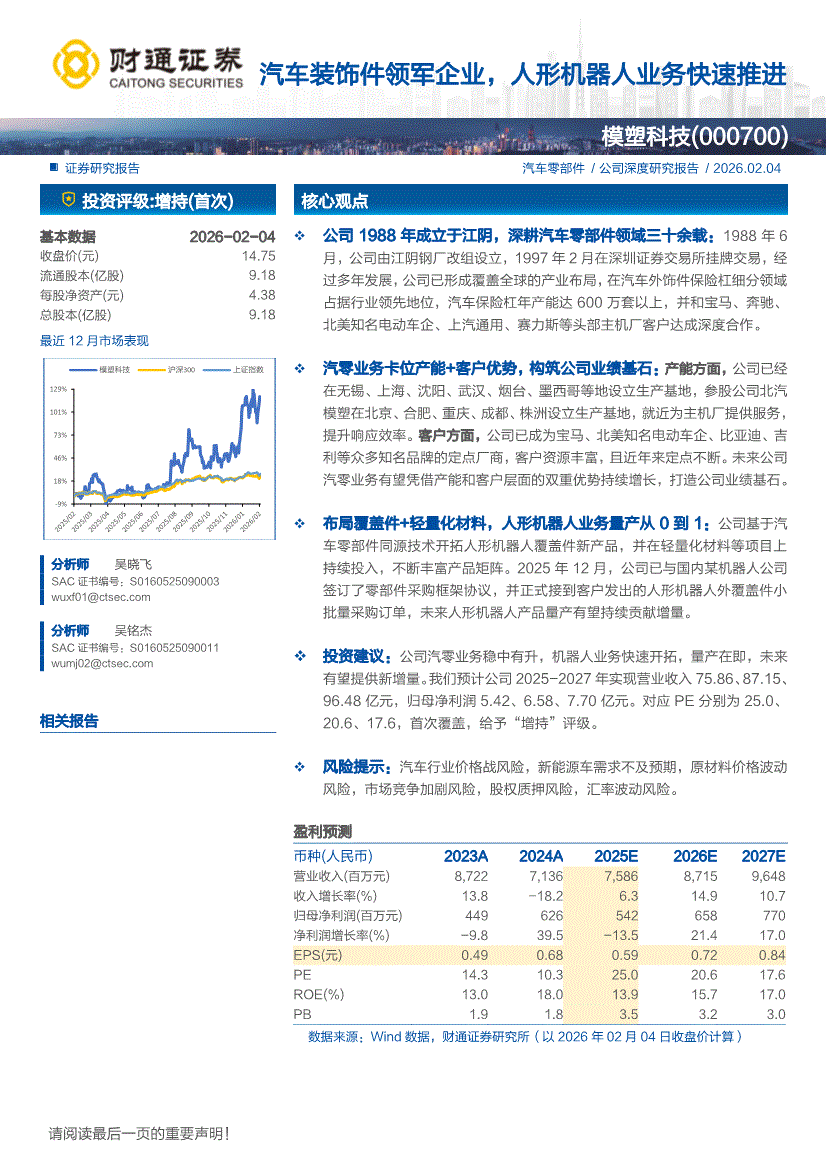 模塑科技:财通证券-模塑科技-000700-汽车装饰件领军企业,人形机器人业务快速推进-260204