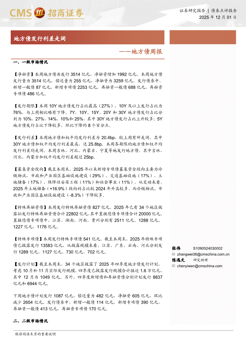 招商证券-地方债周报:地方债发行利差走阔-251201