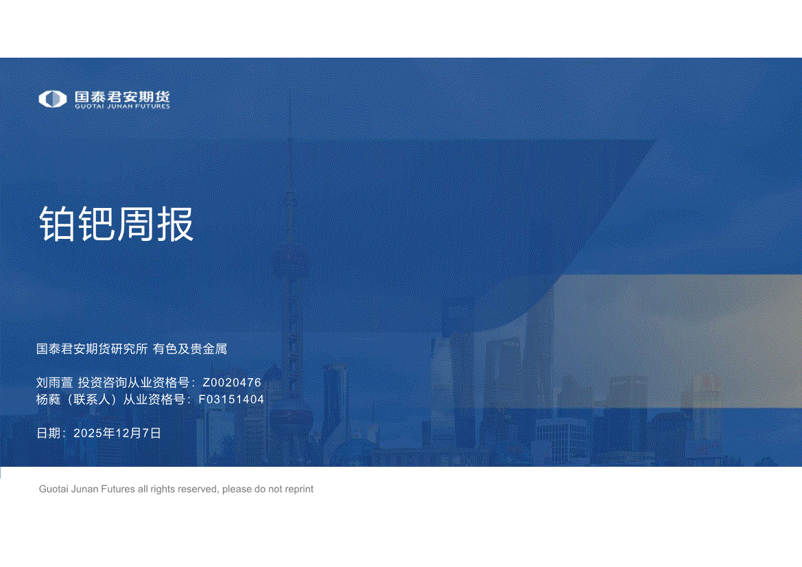 国泰君安期货-铂:继续震荡,钯,窄幅波动-251208